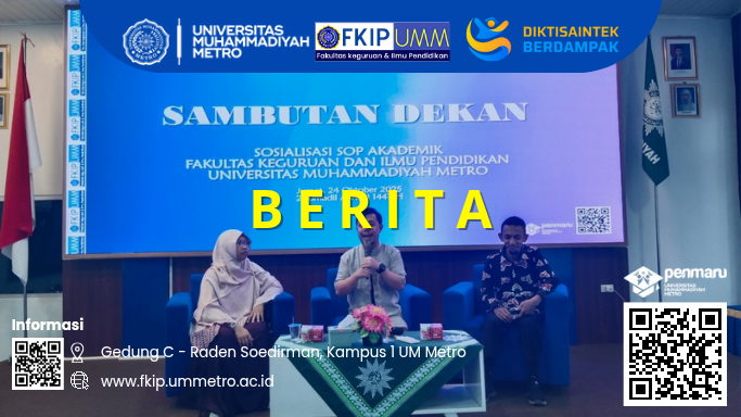 Metro, 24 Oktober 2025 – Fakultas Keguruan dan Ilmu Pendidikan (FKIP) Universitas Muhammadiyah Metro (UM Metro) menegaskan komitmennya dalam menjaga mutu akademik dengan menyelenggarakan Sosialisasi Standar Operasional Prosedur (SOP) Akademik Pembimbingan dan Penyusunan Skripsi. Acara yang berlangsung di Aula A.R. Fachruddin UM Metro ini dihadiri oleh seluruh dosen program studi di lingkungan FKIP.