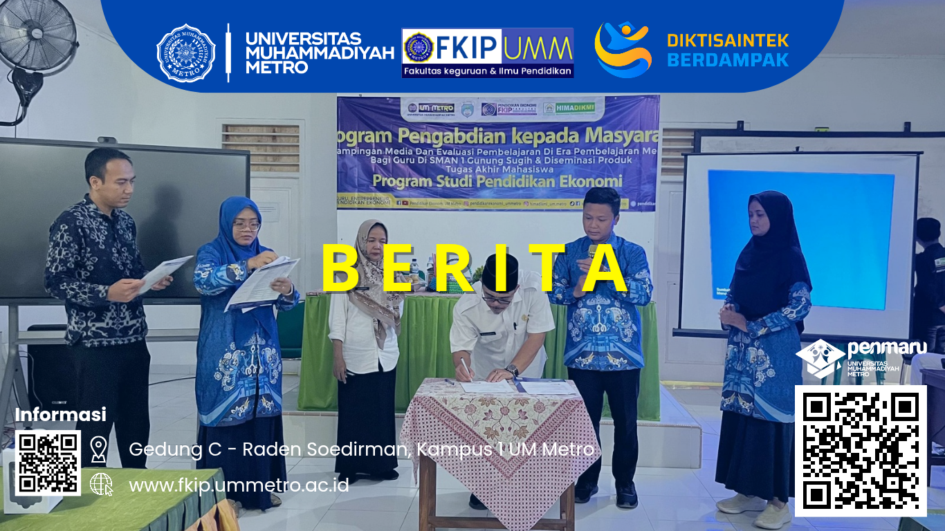 Program Studi Pendidikan Ekonomi Fakultas Keguruan dan Ilmu Pendidikan (FKIP) Universitas Muhammadiyah (UM) Metro menjalin kerja sama dengan SMA Negeri 1 Gunung Sugih melalui penandatanganan Implementation Agreement (IA). Kegiatan ini menjadi wujud nyata implementasi kerja sama antara perguruan tinggi dan satuan pendidikan menengah dalam penguatan bidang pendidikan, pembelajaran, dan pengembangan sumber daya manusia.