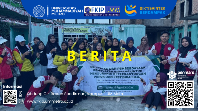 Metro, 23 Agustus 2025 – Tim dosen Universitas Muhammadiyah Metro melaksanakan kegiatan pengabdian masyarakat bertajuk “Pelatihan dan Pemberdayaan Pembuatan Biosaka untuk Mengurangi Ketergantungan Pupuk dan Pestisida Kimia” di Kelompok Senam Nusantara (KSN) RT 51, Kelurahan 15 Polos, Kecamatan Metro Pusat.